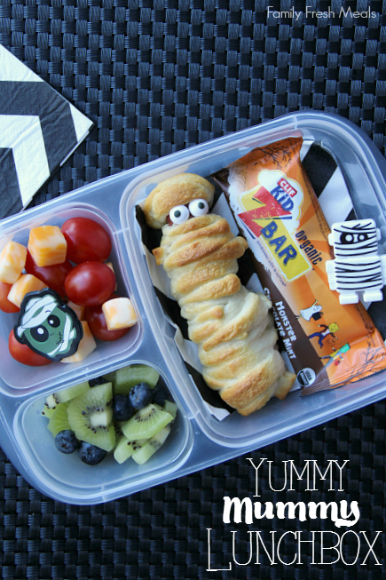 Most of these fun Halloween Lunch Ideas were all assembled in about 10 minutes. The crescent mummy hotdogs take about 15 minutes to put together and cook. So while you wait for those cute creatures to brown up in the oven, put together the rest of the lunch